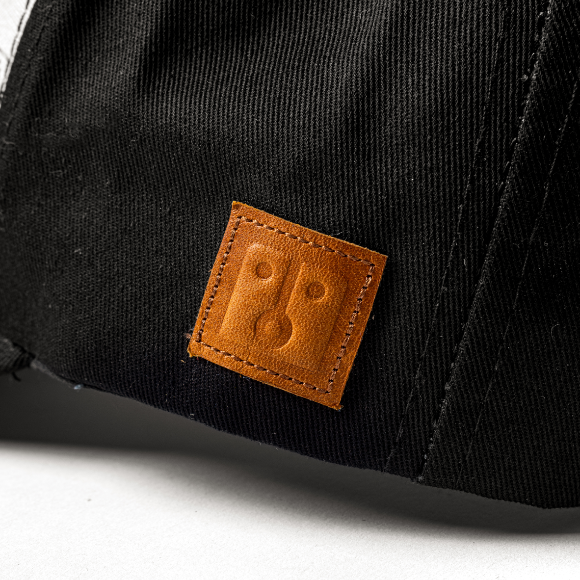 Gorra con ilustración de Tikal, GUATEMALA. Visera roja, bordado 3D en la parte frontal y detalles en cuero elaborados por artesanos de Antigua, GUATEMALA.